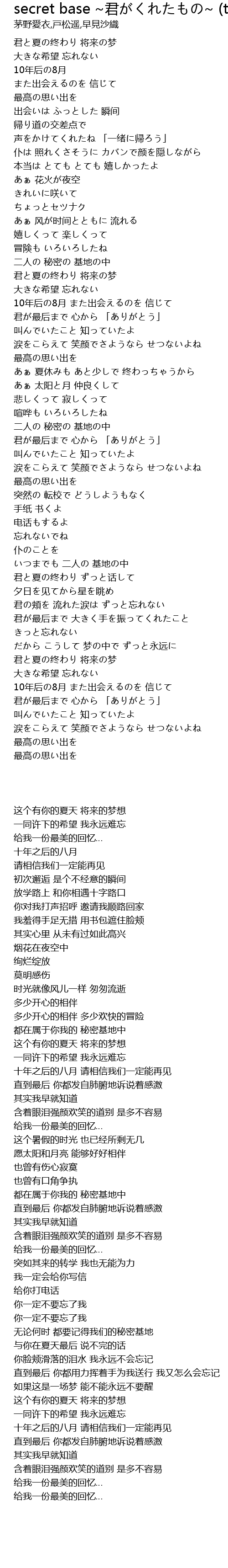 Secret Base 君がくれたもの 歌词 歌词网
